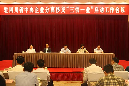 9月25日,国务院国资委与四川省人民政府共同组织召开驻四川省中央企业分离移交“三供一业”启动工作会议。国资委总会计师沈莹和四川省副省长刘捷出席会议并讲话。会上,沈莹和刘捷分别代表国资委和四川省人民政府签订了驻四川省中央企业分离移交“三供一业”工作协议,兵器工业集团、国家电网和成都市政府负责同志作了发言。国资委改组局局长李冰主持了会议。