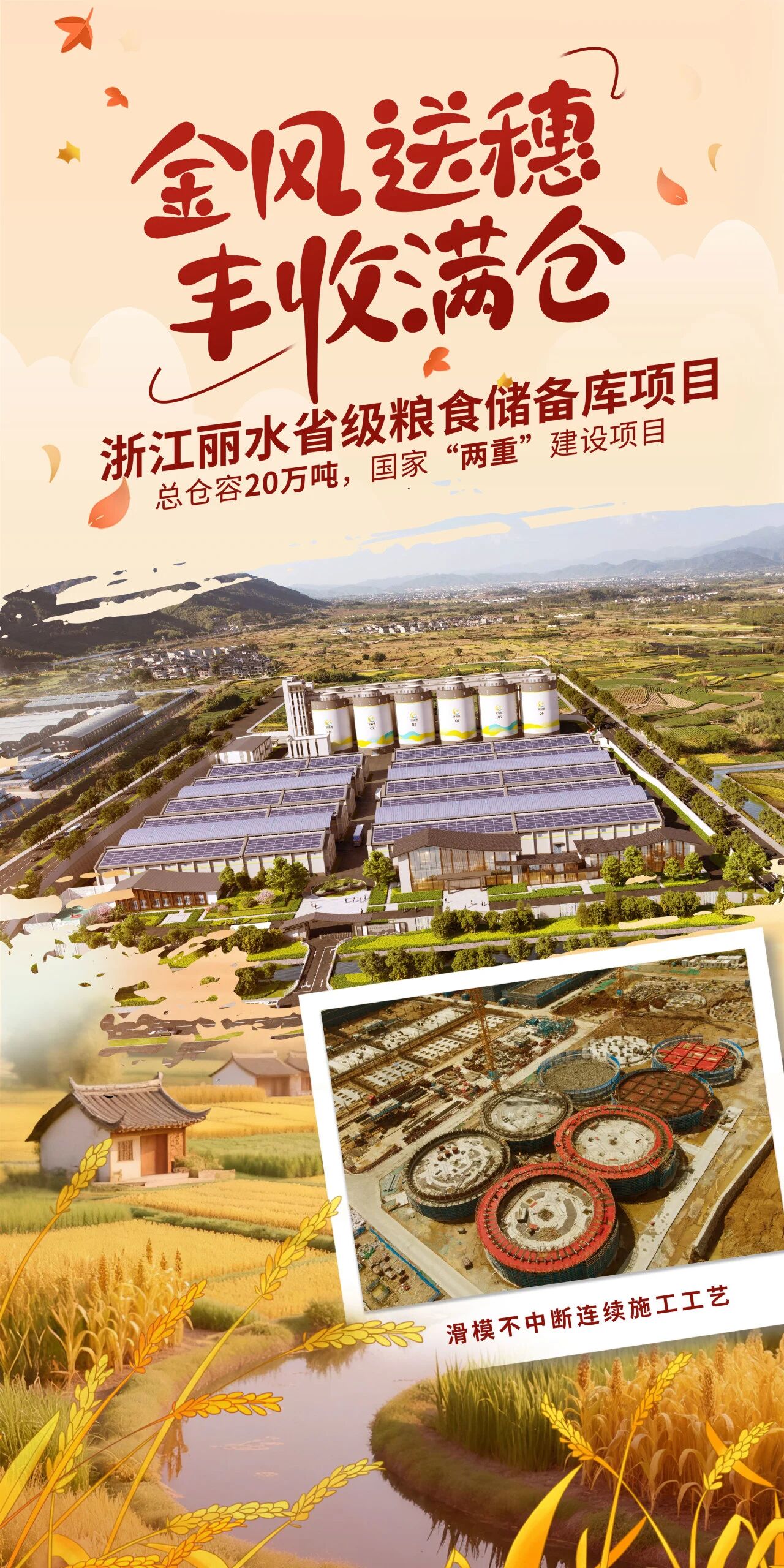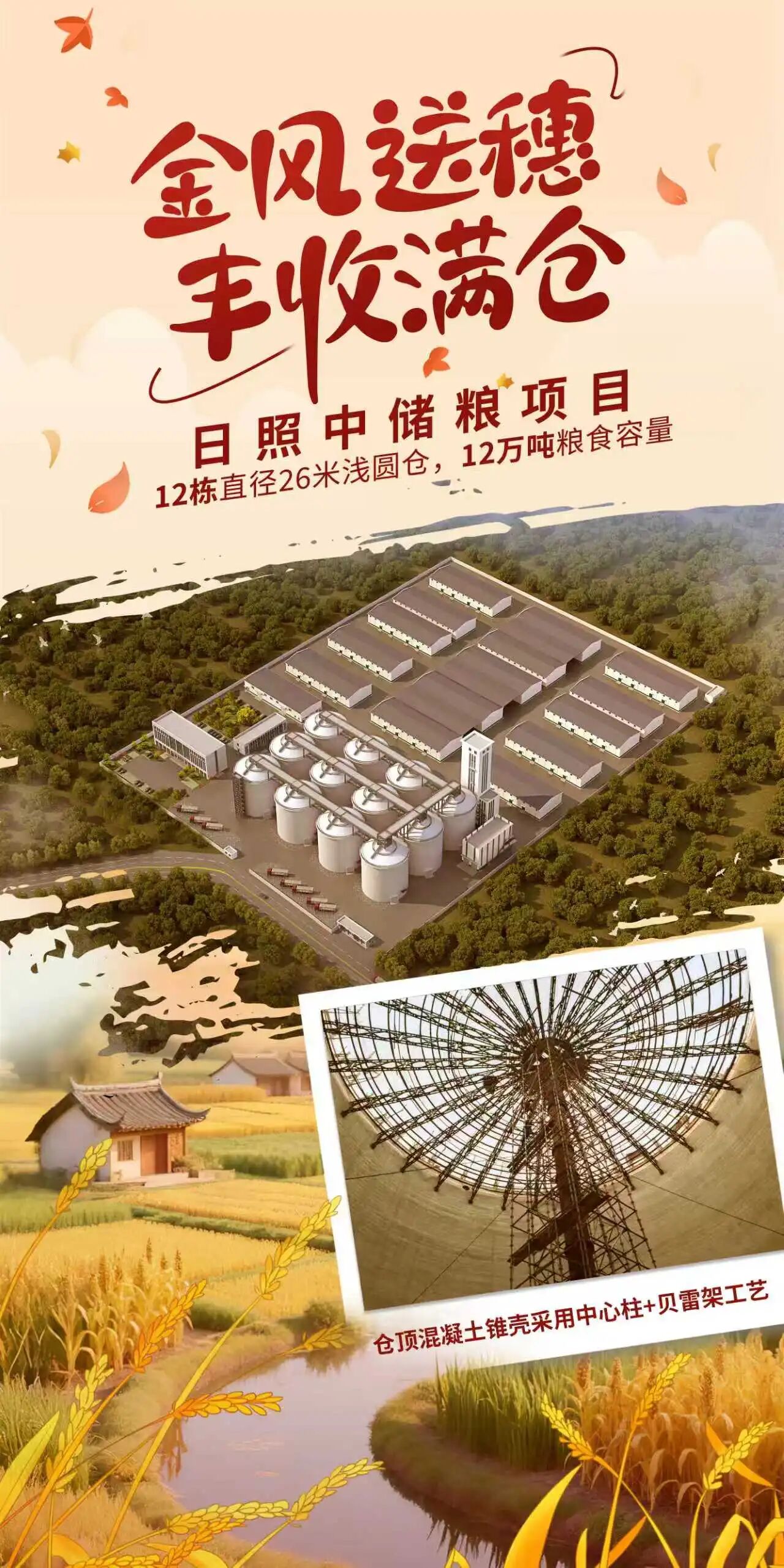 天地有声,丰年有响。今天是第八个中国农民丰收节,多年来,中国建筑旗下中建三局匠心筑造一批粮储工程为粮丰农稳、颗粒归仓,捍卫粮食安全、建设农业强国贡献中建力量,一起来看大国粮仓里的匠心工艺。