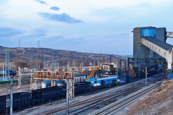 列车在新朔铁路点岱沟站场装车作业。