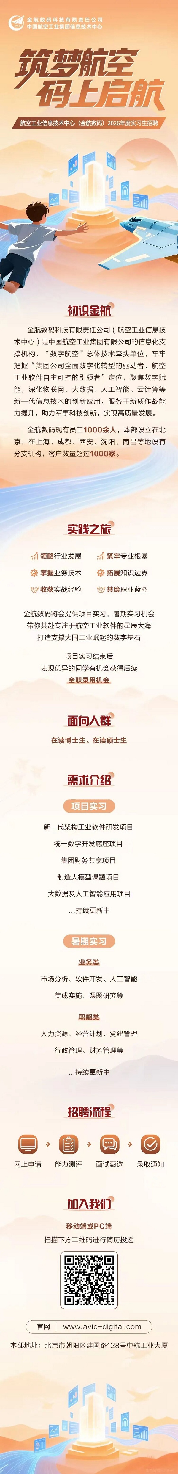 航空工业信息技术中心(金航数码)2026年度实习生招聘正式启动!